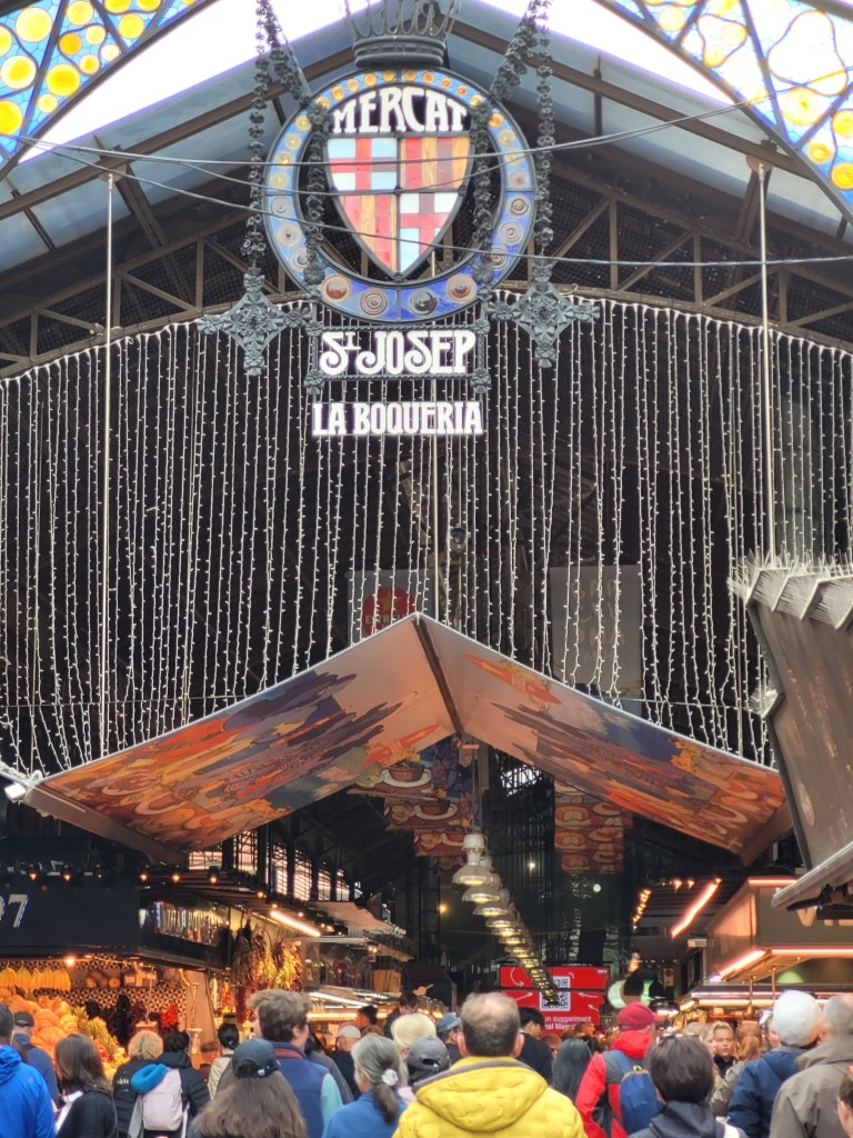 From there, we headed to La Boqueria, Barcelona’s most famous market. A sensory overload in the best way—fresh fruits, jamón, seafood, juices, and sweets all under one colorful roof. It’s the kind of place where you go in for a snack and come out with a full stomach and a camera roll full of photos.