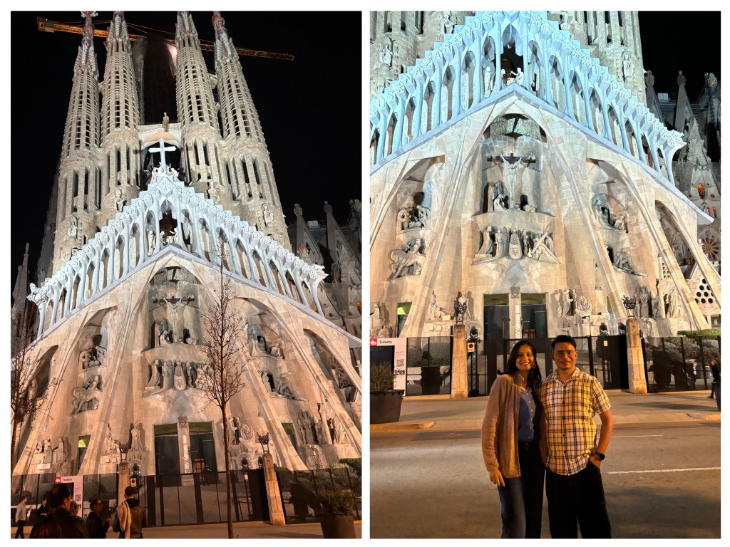 Our apartment was just a short stroll from the majestic Sagrada Família, so we wandered over to see it bathed in the golden hour glow. Even from the outside, the basilica is breathtaking—its spires reaching skyward like a stone forest, each detail more intricate than the last. We snapped a few photos, stood in awe for a while, and let the moment sink in.