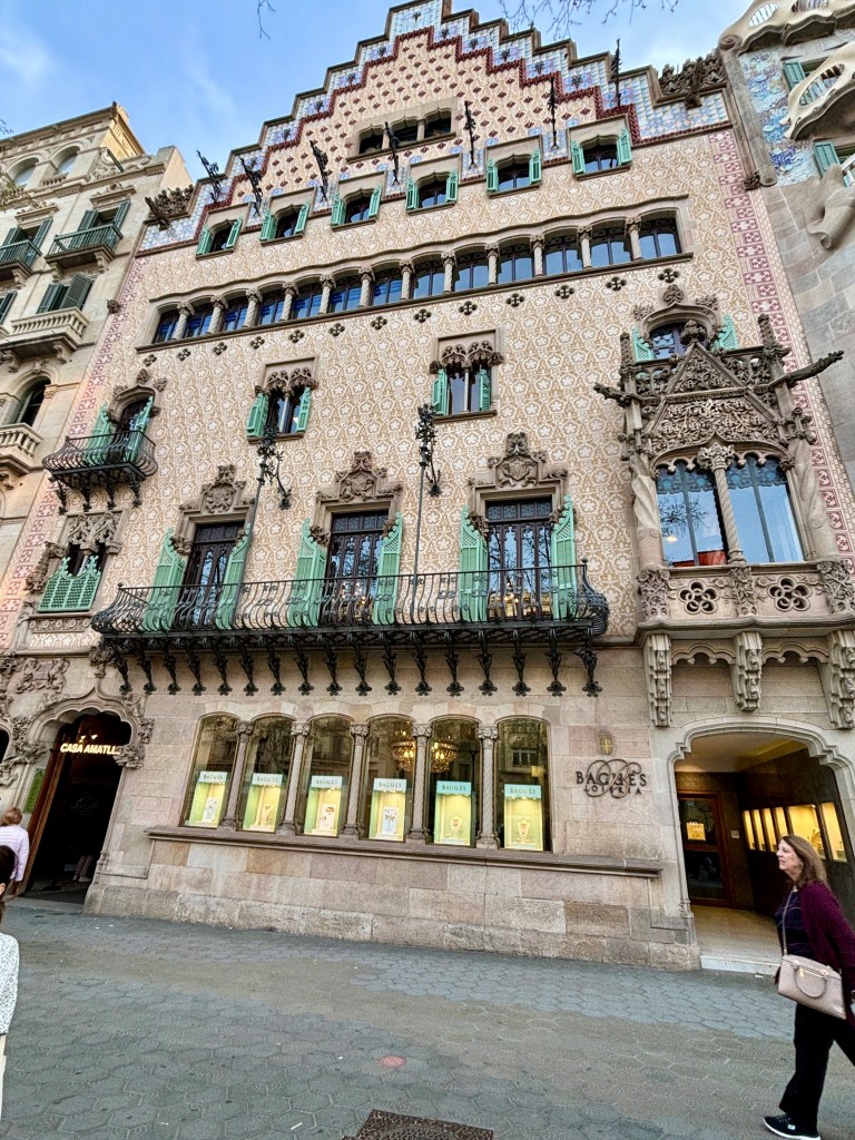 First up was Casa Amatller, a lesser-known gem with a façade that looks like it belongs in a chocolate box (fitting, since it was built for a chocolatier!). Right next to it stood the surreal and dreamlike Casa Batlló, designed by the legendary Antoni Gaudí. With its wavy lines, mosaic tiles, and dragon-like rooftop, it felt like stepping into a fantasy world.