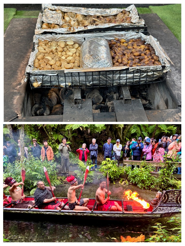After a short rest, we were picked up by a nearby bus for our evening experience: a Māori cultural evening filled with stories, food, language, and dance. We had our doubts about the veg options, but to our surprise, there were plenty. The show guided us through their traditional way of life—ancient war tactics, carving styles, song, and, of course, the famous Haka dance. It was immersive and powerful, and we felt genuinely honored to be part of it.