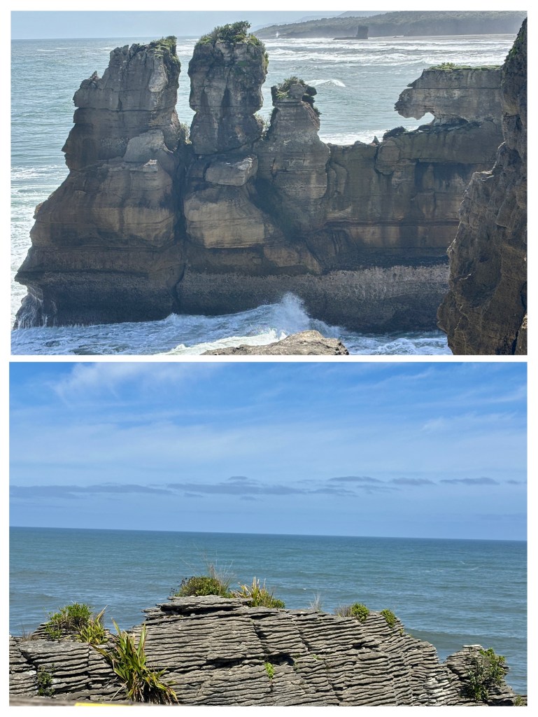 Finally, the sun returned—piercing through after two straight days of rain and setting the perfect tone for our last full day on the South Island. We began with a visit to the remarkable Pancake Rocks in Punakaiki. Science may still be puzzled by their formation, but nature, as always, finds a way to leave us speechless. The layered cliffs, shaped by wind and sea, looked like they belonged to another world.