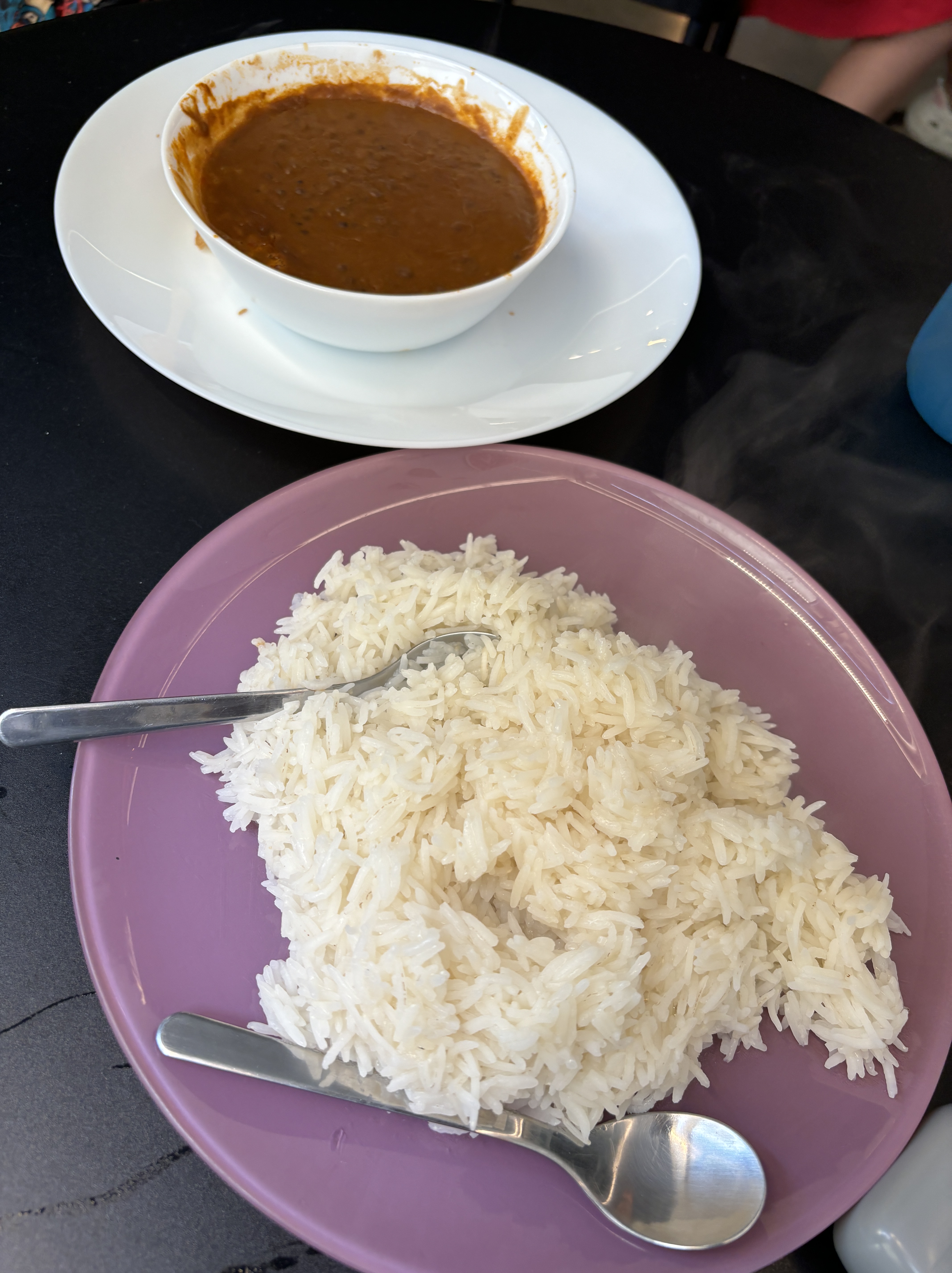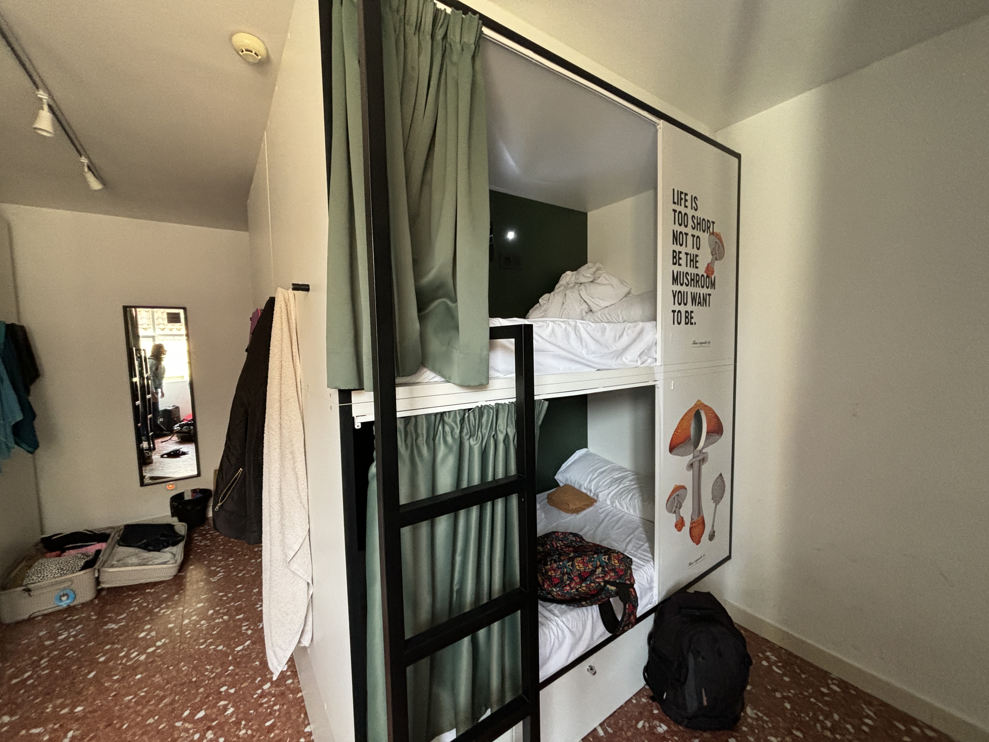 Our final Spanish adventure took us to Toledo, and like every “last day,” it began with good intentions and a late start. The comfort of our Madrid hostel kept us lingering. The dormitory bunk beds, with their quirky motivational poster—“Life is too short not to be the mushroom you want to be”—had already become part of our travel rhythm. Before leaving, I even cooked rice and dal, our first proper comfort meal of the trip. Sitting down to steaming bowls of lentils and fluffy rice felt grounding, a taste of home after weeks of tapas, pastries, and café meals.